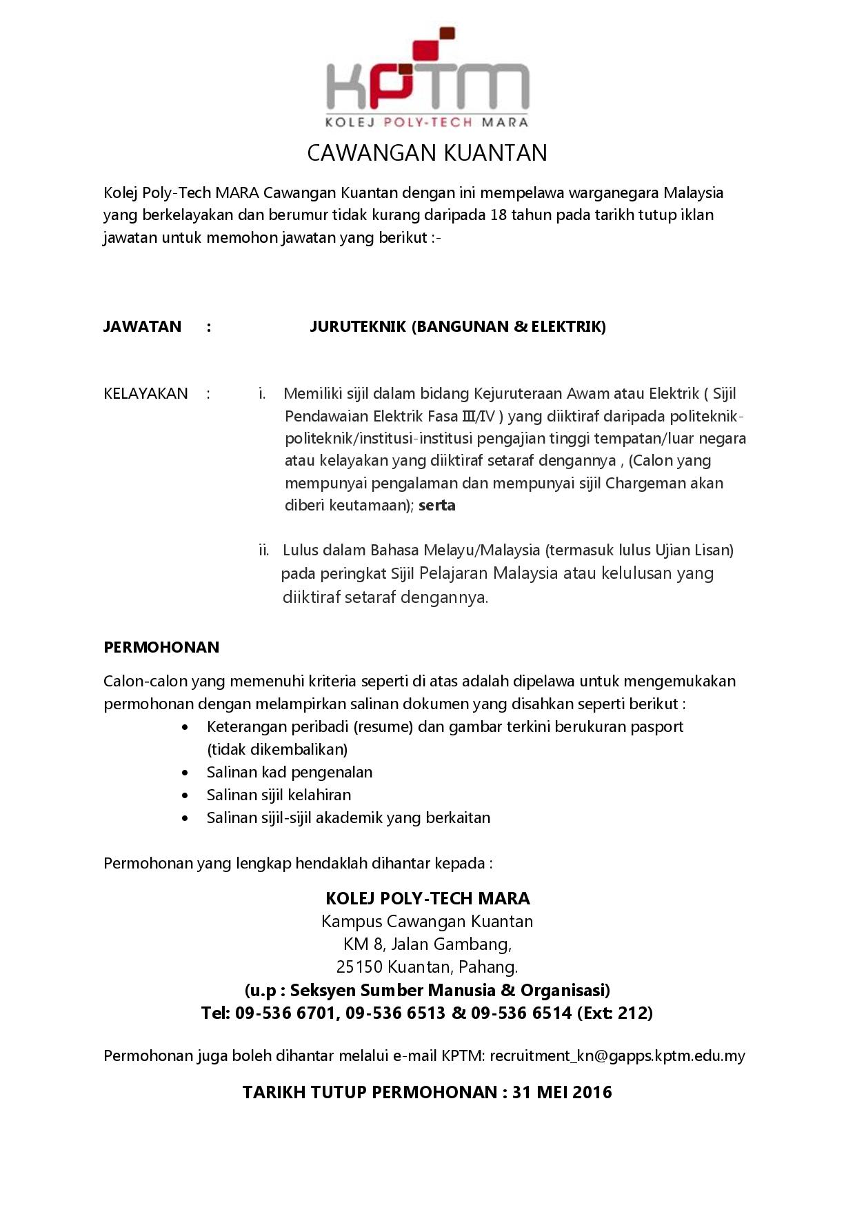 Twitter 上的 Jobsmalaysiapahang Jwtn Kosong Di Kolej Poly Tech Mara Kuantan Utk Memohon Sila Rujuk Lampiran Https T Co Wwtjr8w2ln Twitter